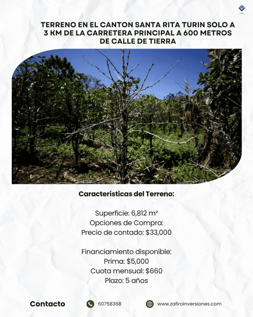 Ubicación: Terreno en Cantón El Paraíso, Turin a solo 500 metros de la calle a Puertas Negras.
